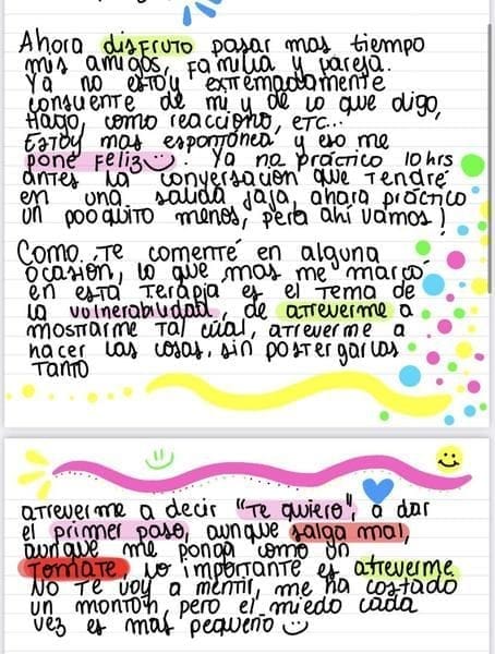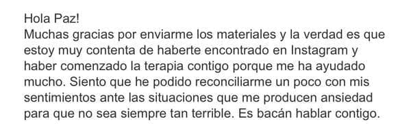 Ahora mi ansiedad es mucho más breve, incluso voy a juntas con amigos y me sorprendo porque fluyo más, estoy tranquila y lo paso bien.