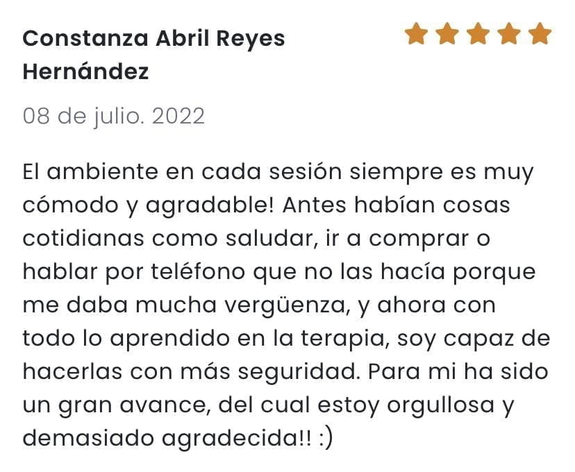 “Antes de consultar me estaba costando mucho la interacción general con gente que conocía y con quienes no, las clases, videos, presentaciones, todo… Me daba taquicardia, me ponía a transpirar, me tiritaba la boca, voz temblorosa, y sabía que en algún momento iba a tener que exponerme y hablar y no iba a poder.